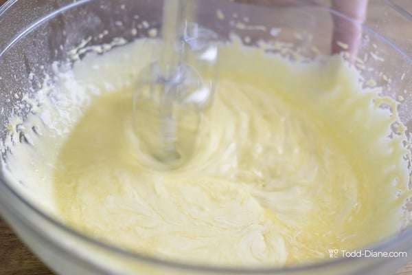 - Beat the 4 egg yolks and 1 1/4 cups (150g) powdered sugar until light.
